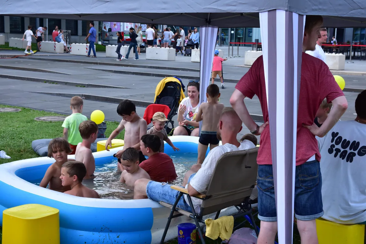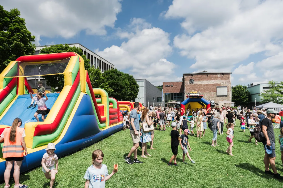 - mit Spielen und Lachen auf Hüpfburgen für die Kinder und Bühnenprogramm